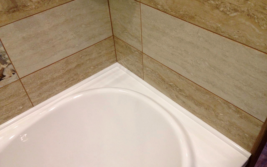 - Jarak yang cukup besar - 0,3-2,5 cm. Dalam keadaan seperti itu, celah pertama diisi dengan busa poliuretana, setelah itu lebar sudut optimum untuk mandi dipilih.