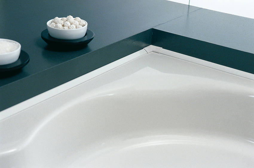 Sempadan akrilik digunakan terutamanya untuk membingkai tab mandi akrilik. Dari segi prestasi, bahan tersebut tidak kalah dengan pilihan lain. Antara kelebihan utama adalah yang utama: