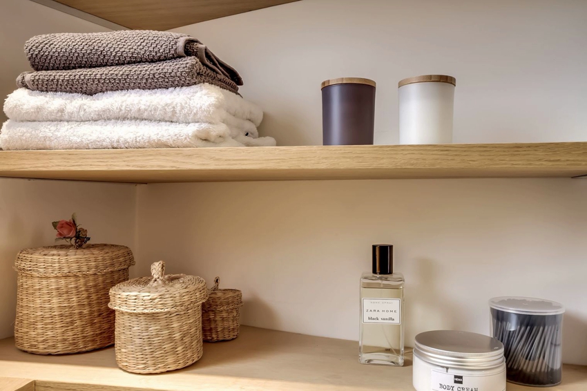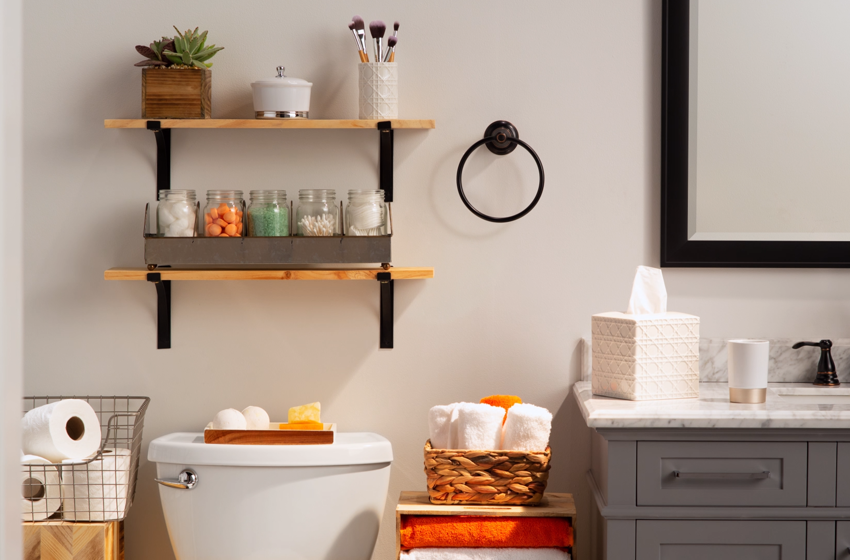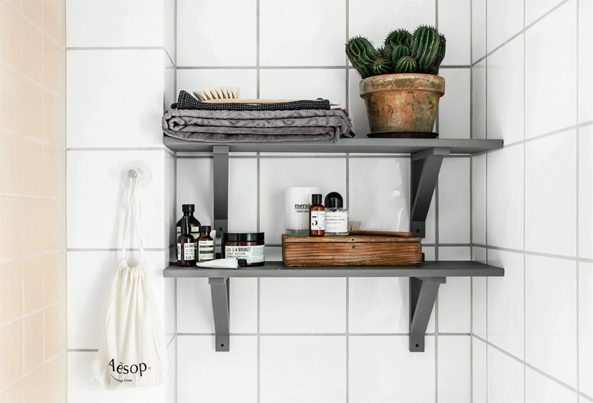 Rak terbina dalam yang padat dan berfungsi di bilik mandi