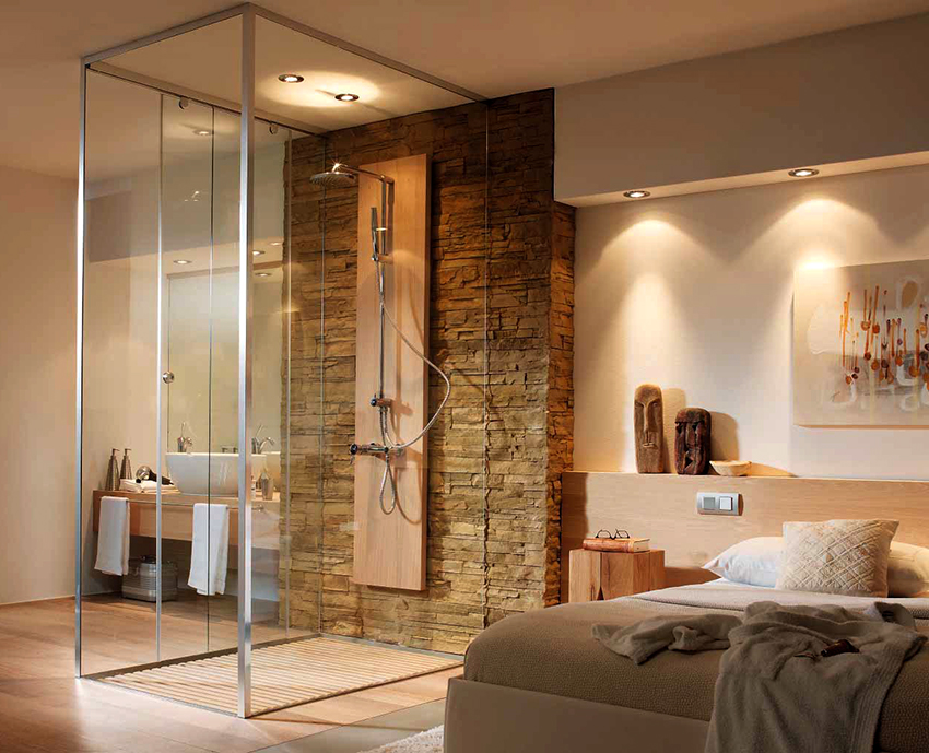 Sekiranya bilik mandi kecil, lebih baik memberi keutamaan kepada bilik mandi dengan dinding lutsinar.