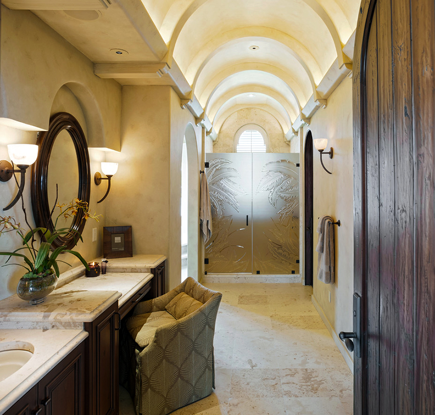 Semasa membuat bahagian dalam yang indah untuk bilik mandi yang besar, anda tidak perlu mengorbankan unsur-unsur yang diperlukan dari bilik untuk memasang ruang serbaguna. Selalunya struktur diletakkan di sudut untuk ergonomi terbaik. Pembahagian ruang secara zon mencipta sejumlah kemungkinan tambahan, sambil menjadikan ruangan itu selesa dan selesa, menghilangkan rasa timbunan benda. Anda boleh menetapkan wilayah untuk prosedur air, bilik mandi, sistem penyimpanan untuk aksesori.