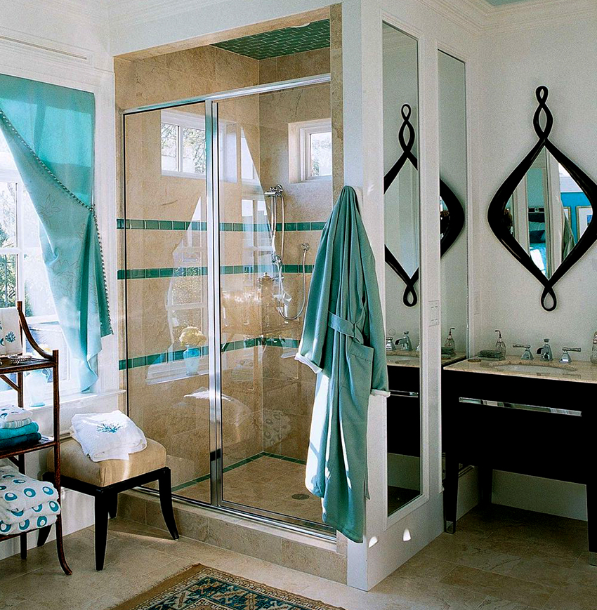 Bilik mandi besar dengan pancuran mandian: pilihan reka bentuk