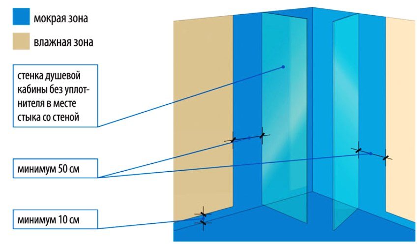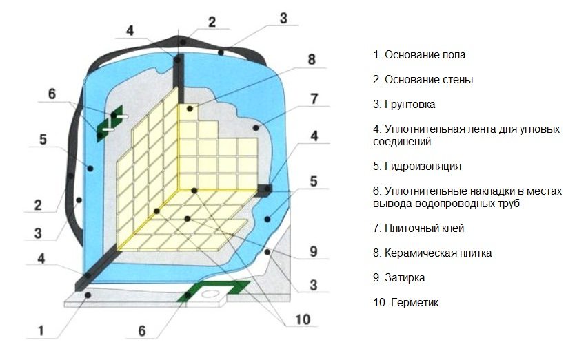 Pertama, dinding dirawat dengan komposisi tahan kelembapan, kemudian sudut dan lantai bilik mandi