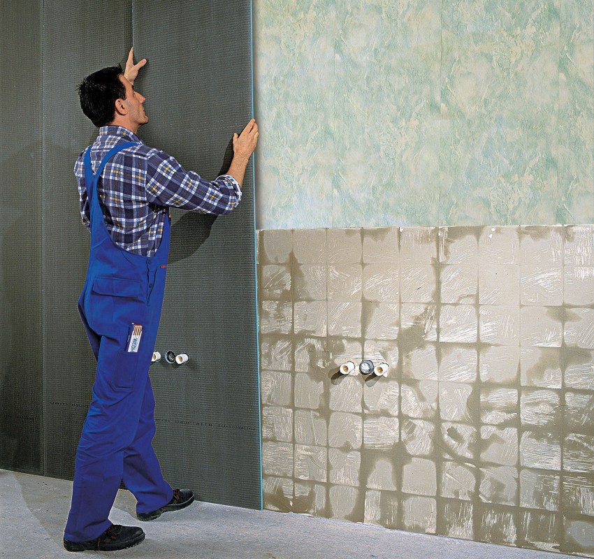 Nasihat! Untuk memperoleh permukaan menegak yang rata, dinding yang dilapisi kalis air boleh dilapisi dengan papan eternit yang tahan kelembapan.