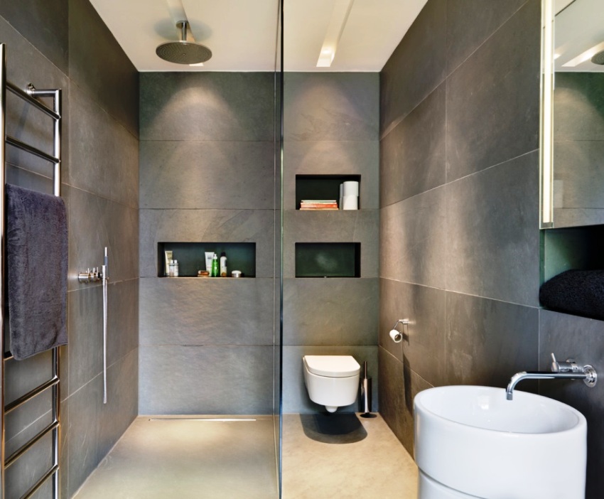 - Di bilik mandi, di mana pemasangan beberapa produk yang digantung dirancang, jenis pemasangan linear dengan lebar 115 cm atau lebih harus dipasang.