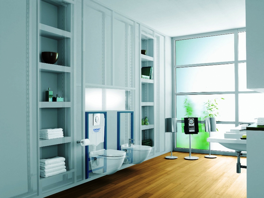 Elemen reka bentuk lain yang penting adalah tandas yang digantung di dinding, tetapi harus diperhatikan bahawa ia tidak selalu dijual lengkap dengan pemasangan. Secara amnya, ukuran pemasangan tandas boleh berbeza-beza. Produk dibezakan oleh fleksibiliti dan mekanisme yang boleh disesuaikan, yang membolehkan anda menyesuaikan bingkai dengan model tandas yang digantung di dinding. Sebagai tambahan untuk memasang struktur yang digantung, bingkai juga dapat digunakan untuk memasang beberapa pilihan untuk model lantai, misalnya, ini termasuk tandas dengan tangki tersembunyi.