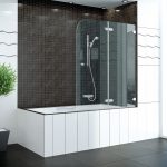 Nasihat berguna! Penggunaan tirai pancuran kaca seperti itu sesuai jika tiga daripada empat panel akan bertentangan dengan dinding.