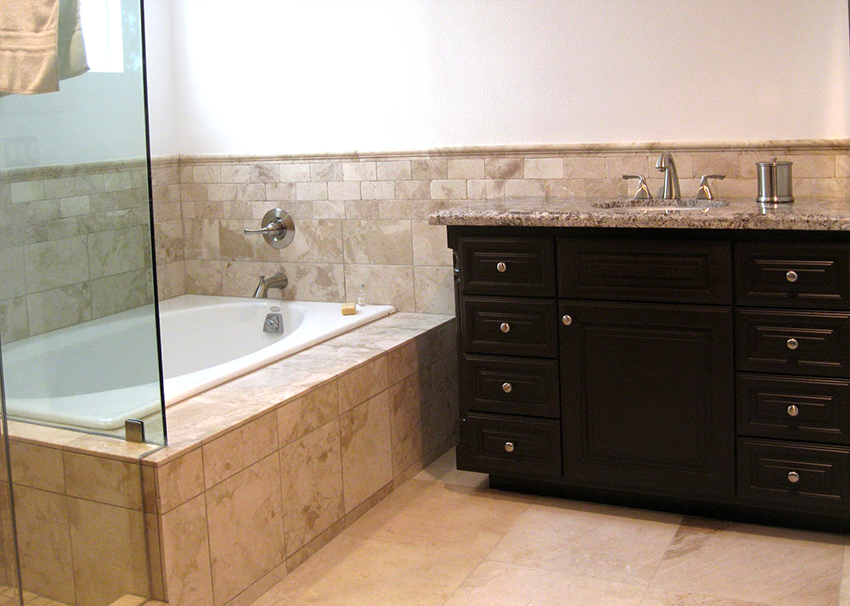 - Tempat diletakkan untuk memasang produk, yang bergantung pada jenis partisi dan bentuk tab mandi. Skrin model dipasang di dua tempat, yang ditentukan dengan penanda, ukuran pita dan tingkat, dan kemudian digerudi dengan gerudi.