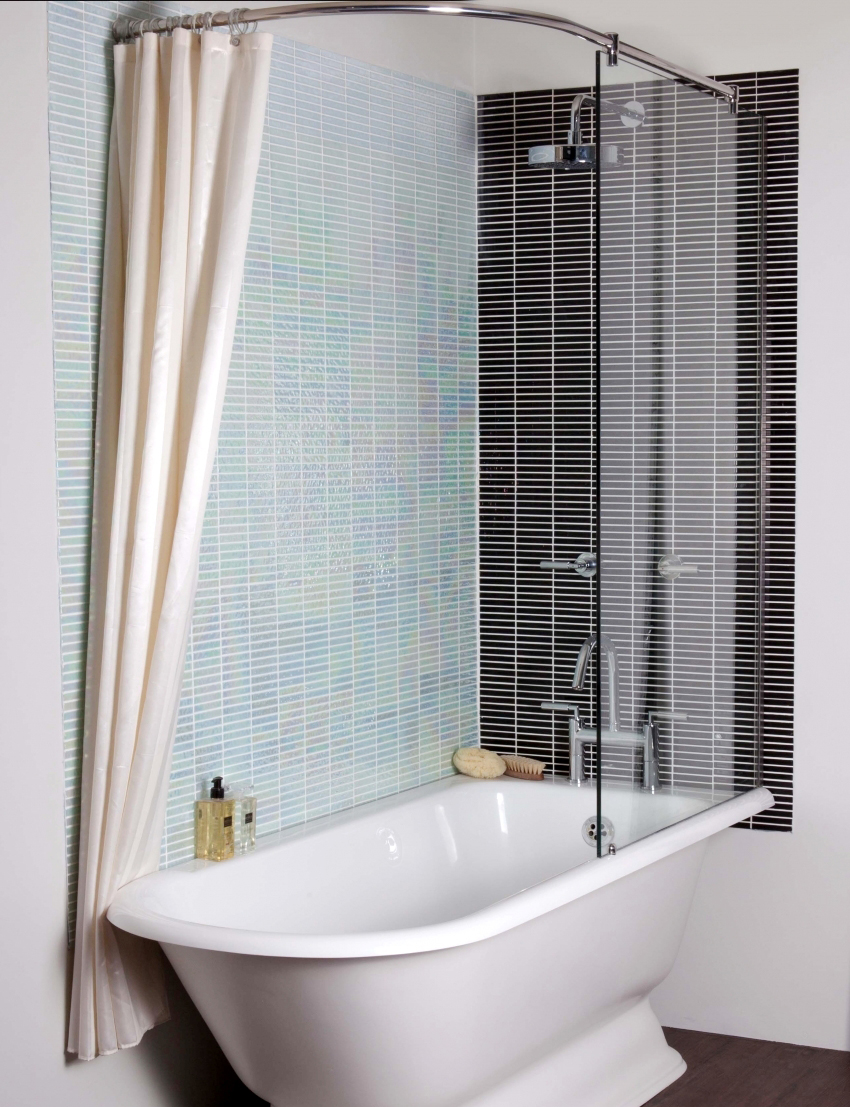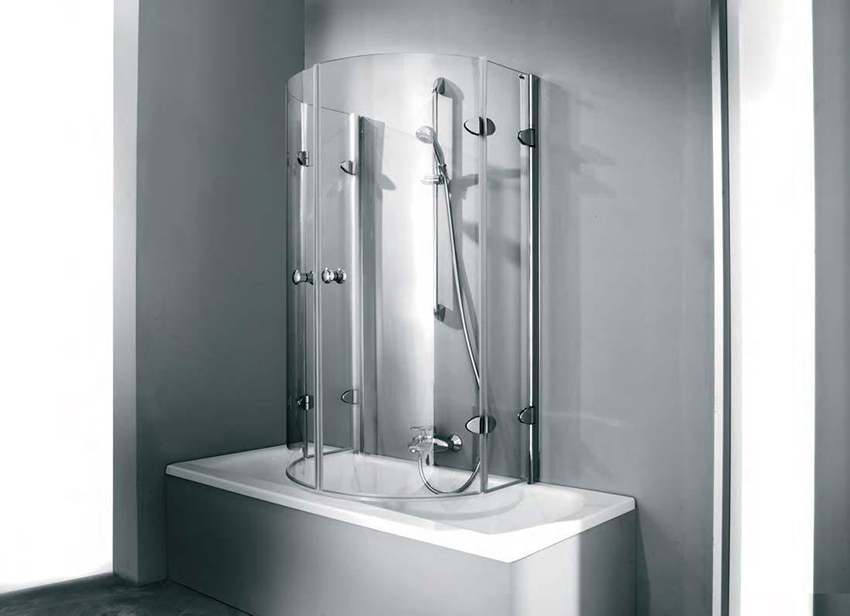 Model-model ini digunakan untuk menekankan gaya dan keperibadian penampilan bilik. Tirai kaca bilik mandi serba boleh. Ia boleh dipasang pada semua jenis paip.