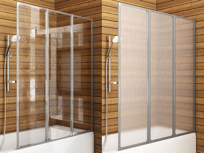 Skrin kaca akan kelihatan lebih halus daripada partition plastik atau vinil. Tetapi pada masa yang sama, produk seperti itu mahal dan memakan masa untuk dipasang. Tirai mandi polikarbonat dan plastik boleh bersaing dengan model seperti itu dari segi harga.