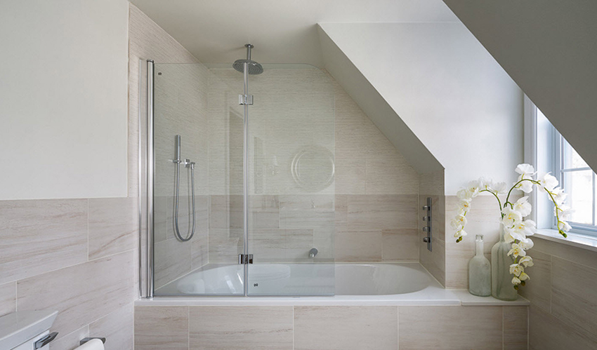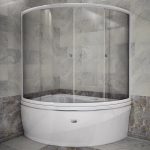 Pemilihan jenis tirai bergantung pada reka bentuk bilik dan ukuran ruang kosong. Pilihannya juga dipengaruhi oleh dimensi bilik mandi atau tab mandi. Mandi sudut dengan langsir kaca kelihatan asli dan bergaya. Tetapi reka bentuk ini hanya sesuai untuk ukuran mandi standard. Jika tidak, anda perlu membuat tirai khas.