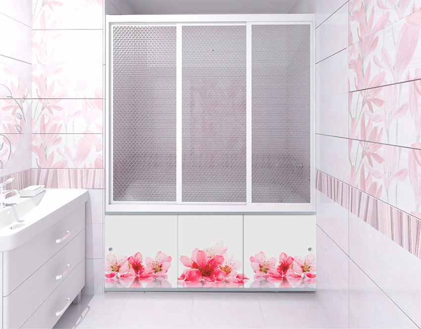 Langsir kaca gelangsar untuk bilik mandi: keterangan model