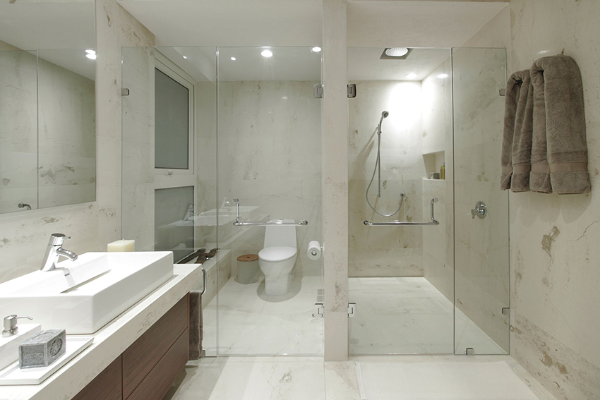 Rumah-rumah lama dicirikan oleh bilik mandi kecil. Selalunya ruang kecil ini merangkumi bilik mandi gabungan. Partisi yang dirancang dengan bergaya datang untuk menyelamatkan, yang dipasang di sisi dan melindungi dari percikan air.