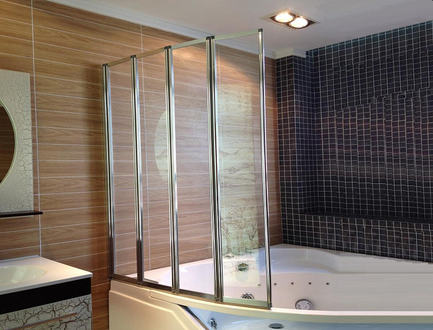 Kelebihan model ini ialah pintu mengambil sedikit ruang, dalam beberapa kes ia dapat dilipat sepenuhnya dan cepat kembali ke tempatnya. Tirai mandi lipat seperti mana-mana reka bentuk dan bentuk juga sesuai. Kanvas kaca, dibingkai oleh bingkai, dihubungkan dengan engsel.Secara luaran, model ini kelihatan seperti buku, tetapi reka bentuk ini memerlukan penggunaan yang teliti. Kelemahan produk sedemikian adalah bahawa sejumlah besar bahan diperlukan untuk pembuatannya, yang bermaksud bahawa kos tirai meningkat.