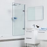 Tirai kaca berayun untuk bilik mandi: ciri reka bentuk