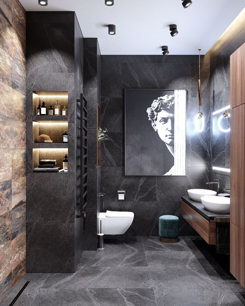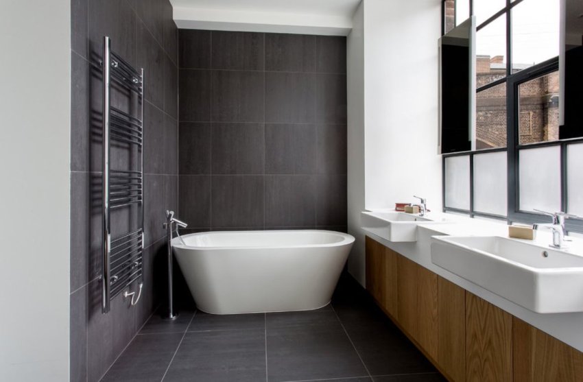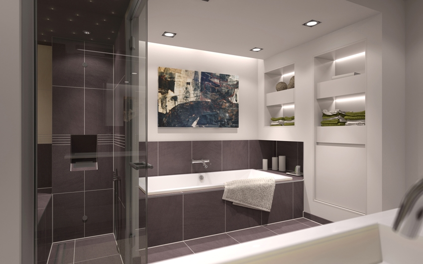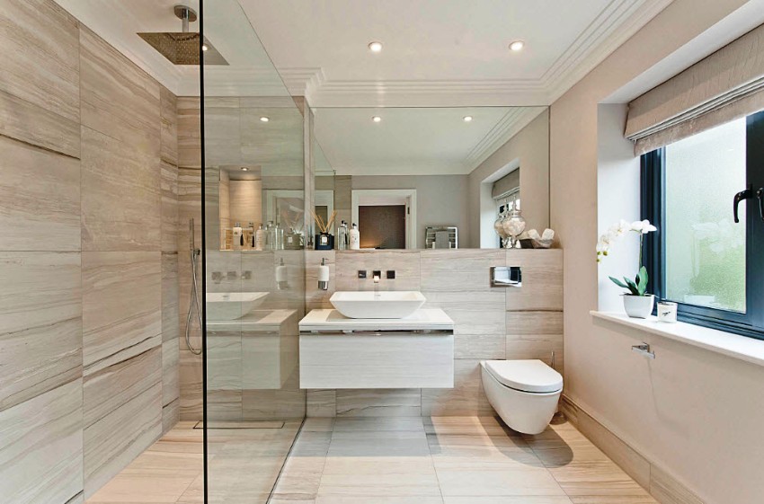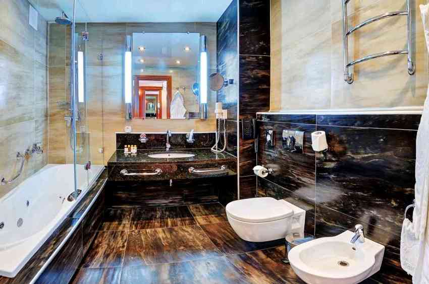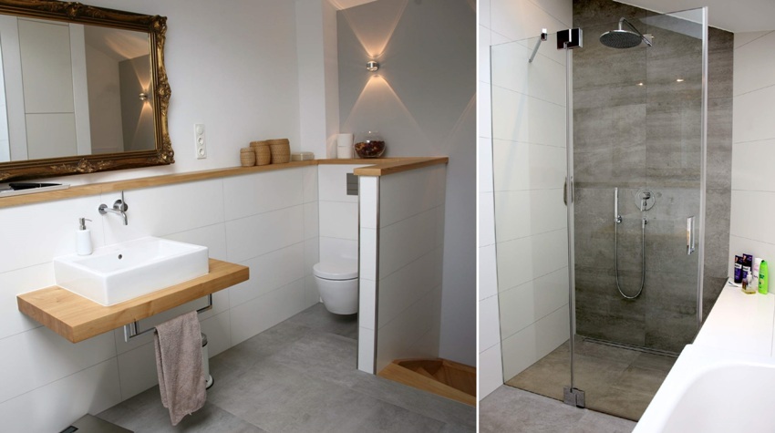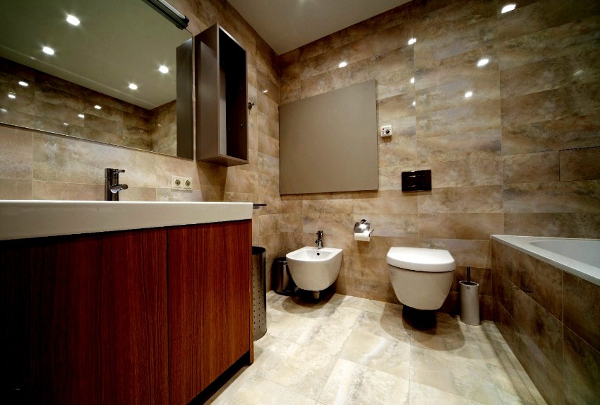 Bilik mandi moden di bangunan baru mempunyai kawasan yang luas yang membolehkan keluarga besar dapat menampung dengan selesa di sini. Pada masa yang sama, di pangsapuri dengan ukuran yang besar, biasanya ada 2 bilik mandi, dan di salah satu bilik, satu set paip penuh dipasang, dan di sebuah ruangan kecil hanya tandas yang dipasang, dan kadang-kadang pancuran dengan dimensi minimum. Dalam keluarga dengan lebih daripada 5 orang dewasa, termasuk remaja, memasang dua tandas dan tempat mandi akan mengelakkan banyak pertengkaran keluarga.