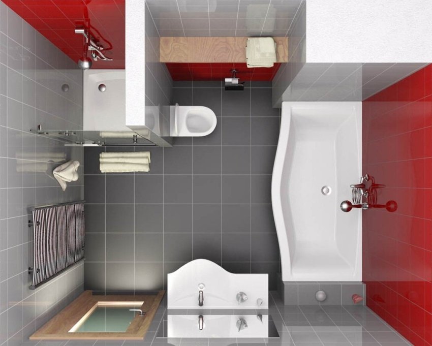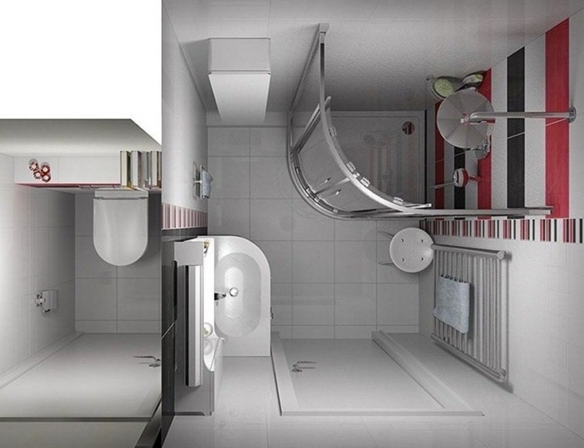 Bagi bilik mandi gabungan, di sini bilik, bergantung pada ukuran, dibahagikan kepada pilihan berikut: