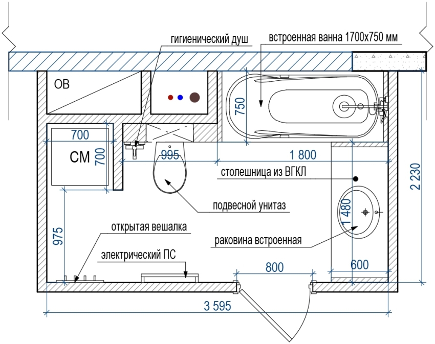 Perkara utama yang menentukan kejayaan reka bentuk bilik mandi gabungan di rumah persendirian adalah susunan ruang yang betul, yang mengambil kira dimensi dan ciri konfigurasi bilik. Di bilik mandi, yang dibezakan dengan bentuk segi empat dan pintu yang terletak di sepanjang dinding panjang, susun atur berikut dianggap sebagai pilihan terbaik untuk reka bentuk dalaman:
