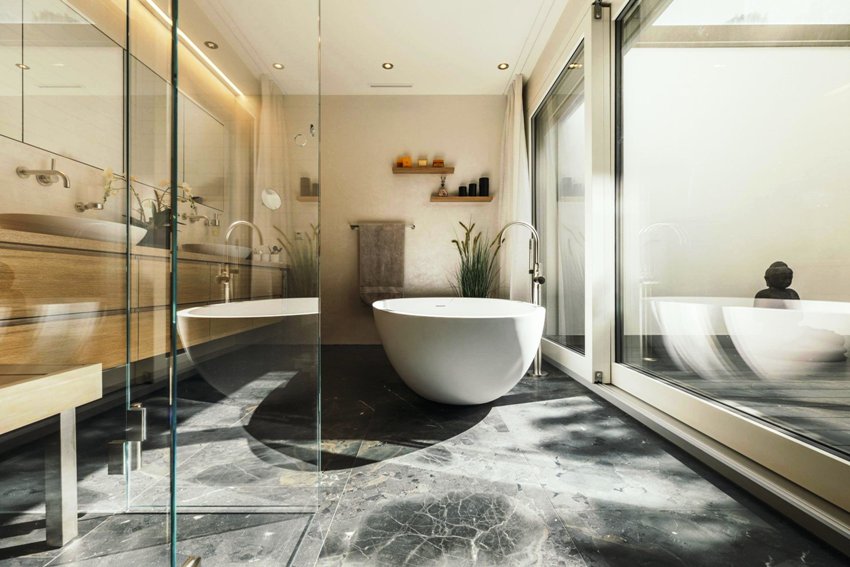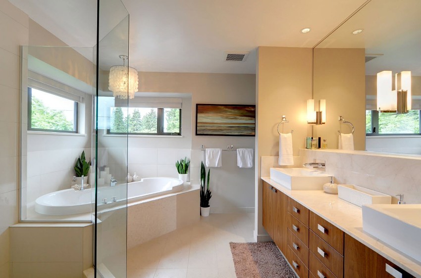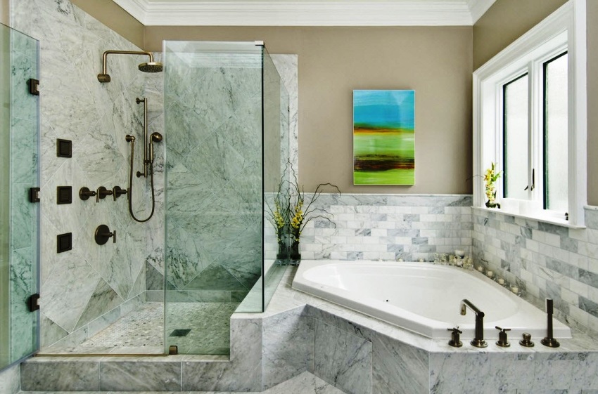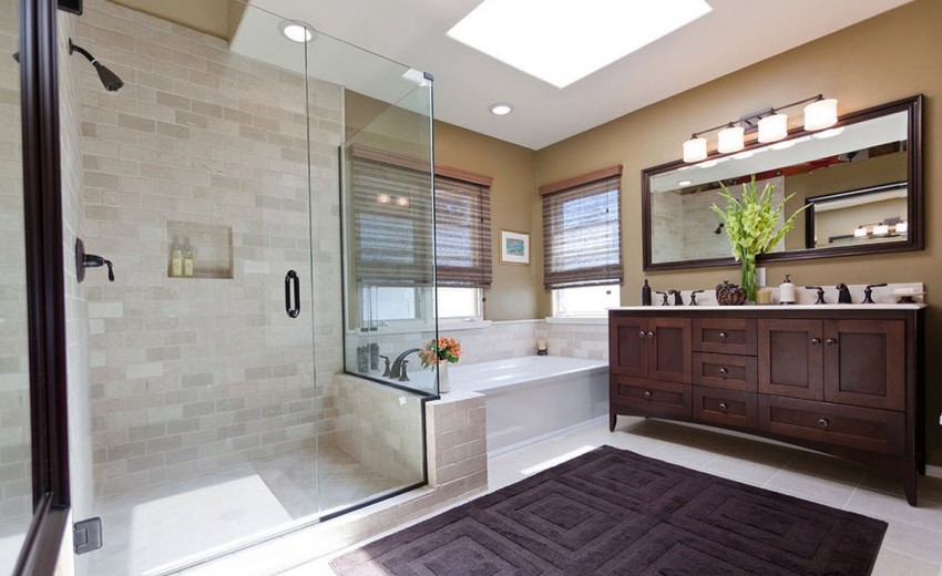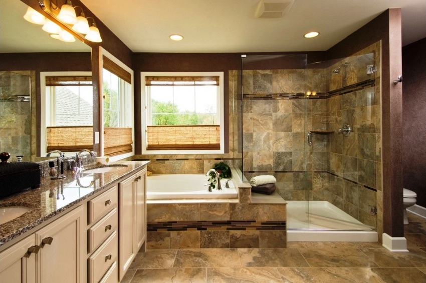 Ciri-ciri mengatur bilik mandi yang luas lebih besar dari 10 m² di rumah persendirian atau pangsapuri