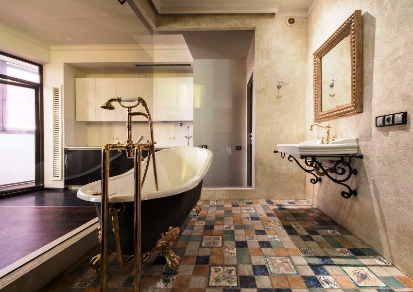 Tab mandi kelihatan sangat cantik di bilik-bilik besar, di mana tangga menuju, dan mangkuk itu sendiri naik di atas tingkat lantai. Pilihan ini tidak boleh dikeluarkan jika bilik mandi akan digunakan oleh orang tua, orang kurang upaya atau anak-anak kecil, yang langkahnya bukan sahaja akan menimbulkan ketidakselesaan yang ketara, tetapi juga menjadi elemen tambahan yang berbahaya.