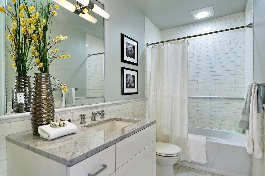 - Keupayaan untuk menunjukkan lebih banyak imaginasi walaupun mengatur reka bentuk bilik mandi kecil. Lebih mudah mengatur persekitaran yang selesa dan menarik di satu bilik.