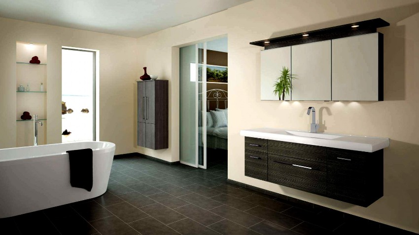 Bilik ini adalah bilik di mana tab mandi dipasang. Pada masa yang sama, sangat mungkin bahawa, selain mangkuk, objek lain akan diletakkan di sini, seperti tandas, bidet, sink dan kabinet. Sekiranya luas bilik besar, anda boleh memasang banyak peralatan tambahan, tetapi lebih kerap dimensi standard bilik mandi hanya membolehkan anda meletakkan barang keperluan. Perkara utama adalah mengatur semuanya dengan betul sehingga ada ruang untuk bebas bergerak.