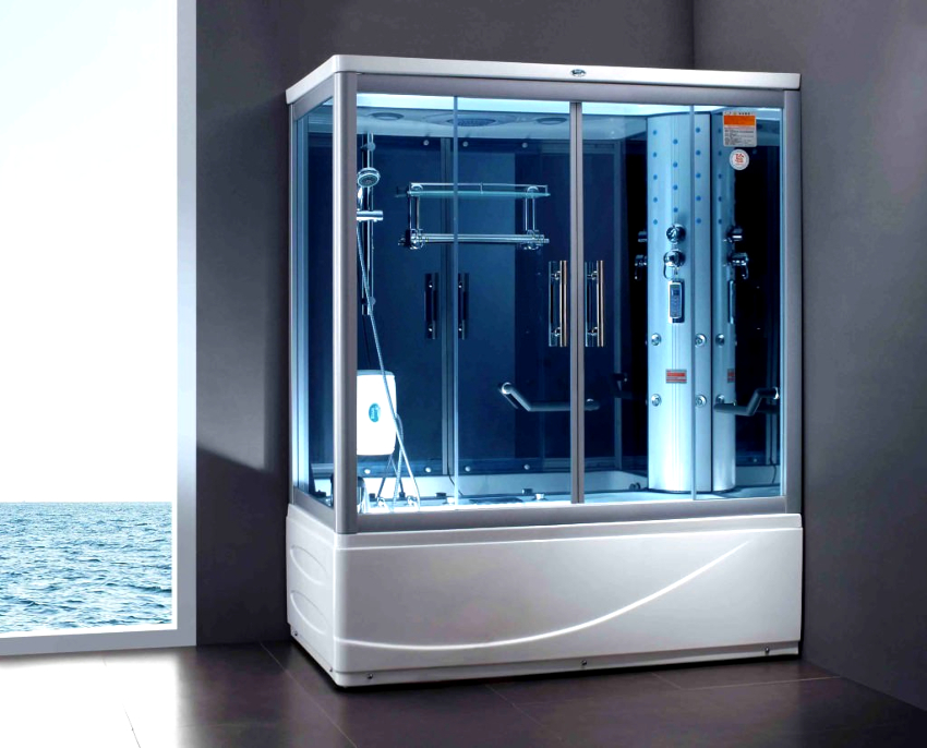 Mandi wap. Ia mempunyai fungsi penjana stim dan dibezakan dengan adanya hidromassage atas dan bawah. Ia dicirikan bukan hanya dengan kemudahan, tetapi juga dengan reka bentuk yang bergaya. Harga purata - 70 ribu rubel.