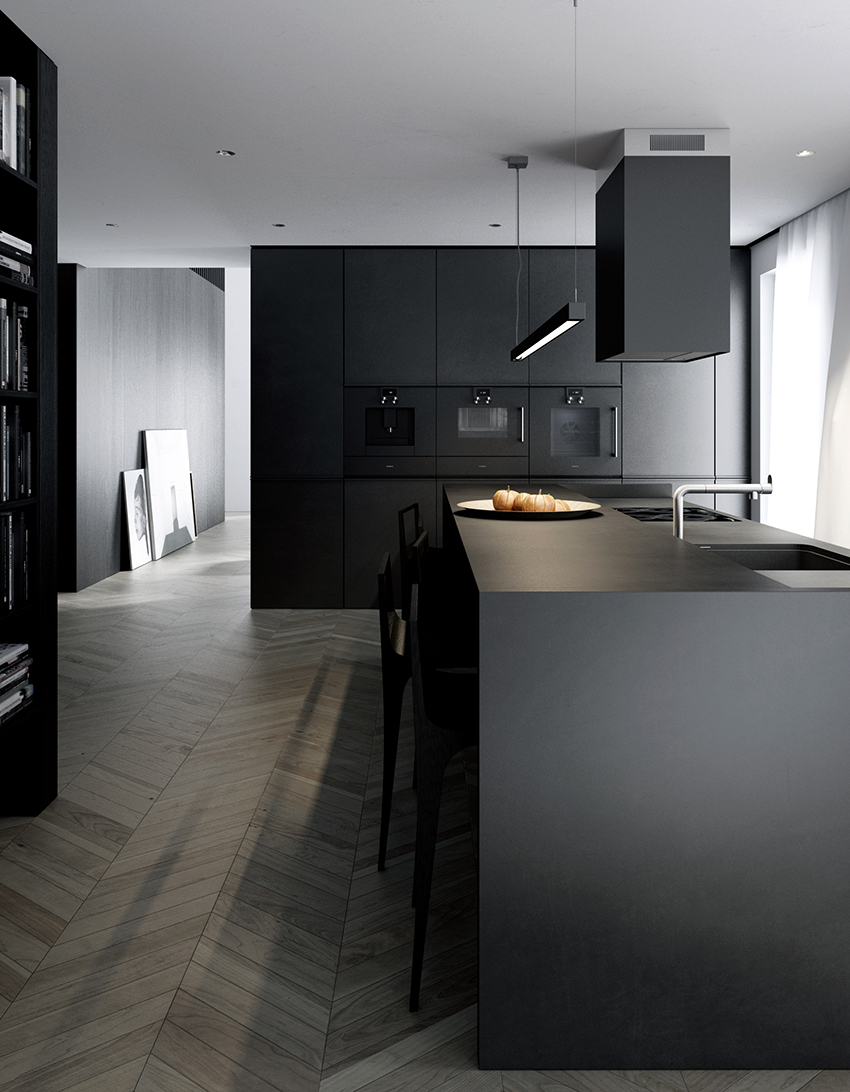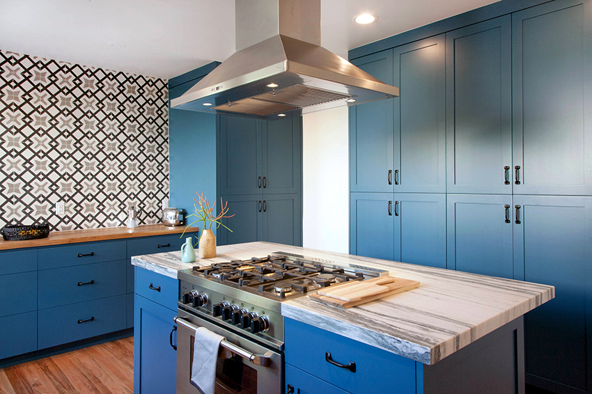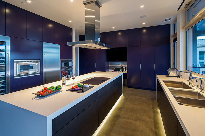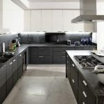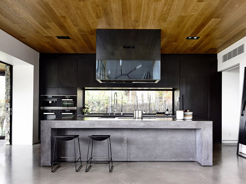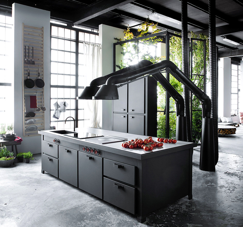 Reka bentuk perabot dapur lebih jelas dinyatakan dalam gaya hiasan tertentu, tudung pengekstrak memainkan peranan yang semakin ketara di kawasan pedalaman. Sebelumnya dibangun ke dalam bahagian struktur perabot, ia telah menjadi elemen bebas, ukurannya bertambah dan memperoleh berbagai bentuk.