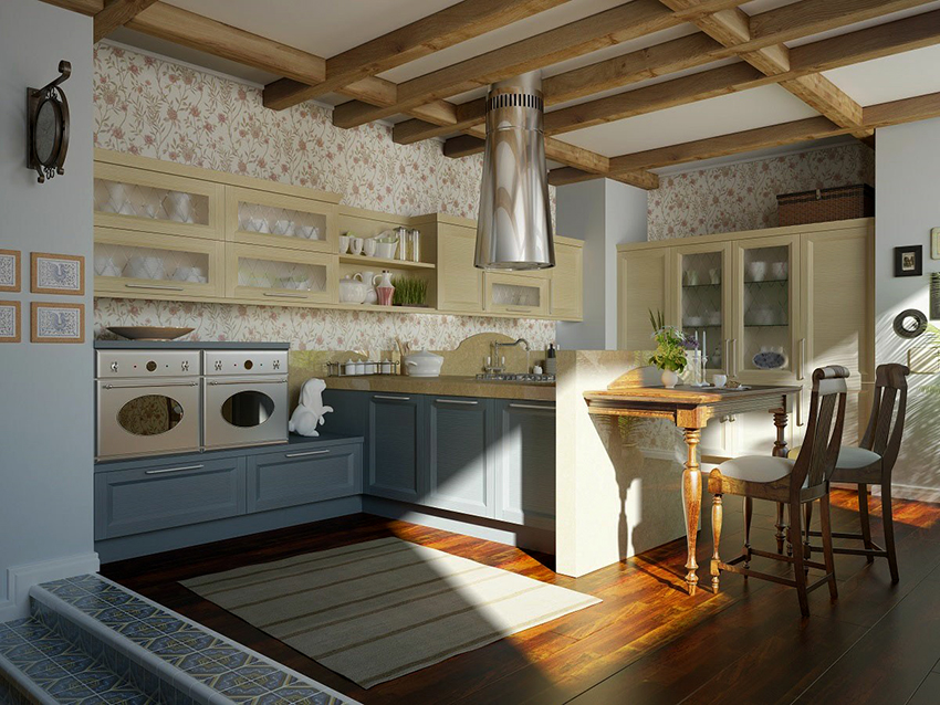 Dengan kubah dan paip bulat, penutup dapur akan melengkapkan bahagian dapur dengan sempurna. Komposisi ini melembutkan kesegaran, memberi keselesaan dan keselesaan. Kehadiran sudut dan garis lurus akan menambah skala ke pedalaman, rasa kekukuhan, kebolehpercayaan.