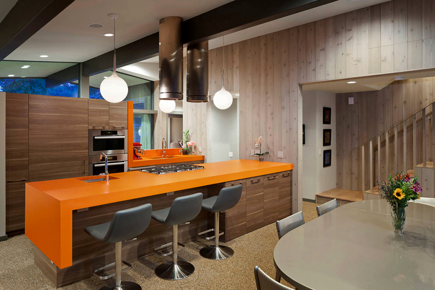 Sehingga baru-baru ini, dapur paling terkenal dengan standard dan tradisional: perabot kabinet di sepanjang dinding, termasuk kabinet dinding, permukaan kerja dan meja makan. Reka bentuknya dimodenkan, kotak pensil ditarik muncul, laci volumetrik dan bukannya rak, kaunter bar, pelbagai elemen gelongsor dan lipat.