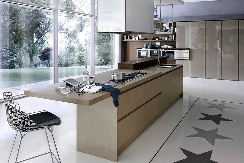 Dapur pulau telah menjadi pengetahuan sebenar industri dalaman dapur. Keanehan mereka terletak pada hakikat bahawa sebahagian besar permukaan kerja dari dinding berpindah ke zon tengah ruangan atau berpindah ke salah satu sisi, tetapi ia pasti menjadi perabot yang berdiri sendiri, seperti sebuah pulau. Tempat kelahiran kaedah penyediaan bilik ini adalah Itali.