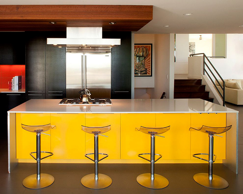Fungsi pulau ini mungkin berbeza-beza. Ada yang meletakkan kompor di atasnya, masukkan oven ke bahagian bawah.Singki, tempat untuk minum kopi pagi, ruang makan juga dapat diletakkan dalam struktur perabot yang menempati posisi tengah di dapur. Sekiranya terdapat kompor, tudung dipasang di atas pulau.