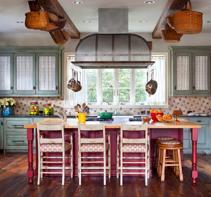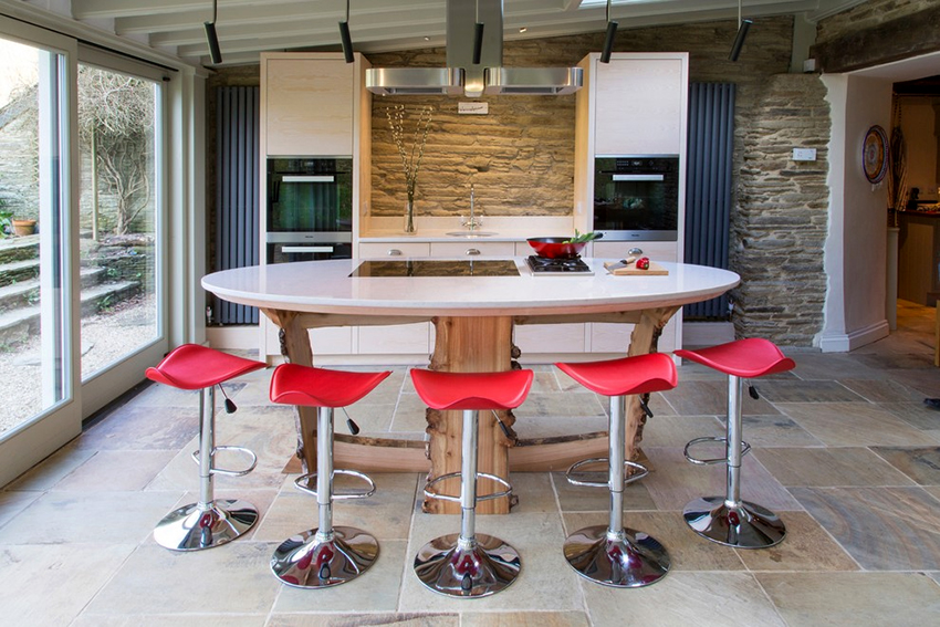 - kombinasi dengan barang-barang isi rumah dan peralatan bulat di dapur: pinggan mangkuk, sink, periuk perlahan, dll.