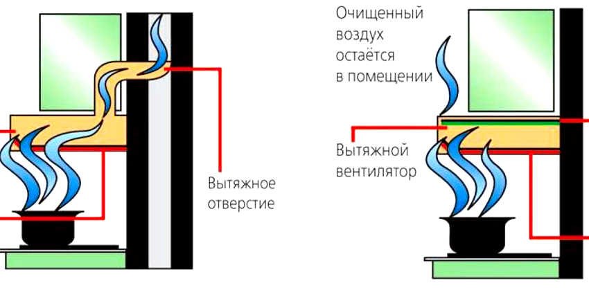 Ciri pembezaan mereka yang lain (dibandingkan dengan penutup saluran udara konvensional) adalah hakikat bahawa udara, melalui penapisan berganda, tidak disalurkan ke dalam batang pengudaraan, tetapi kembali ke bilik. Ini benar terutamanya jika dandang gas dipasang di dapur, yang menghabiskan banyak udara. Selama satu jam beroperasi, alat ini dapat mengatasi pembersihan dari 2,5 hingga 22 ribu meter padu udara, dan rintangan aerodinamik mencapai 120 Pa. Penting untuk diperhatikan bahawa untuk operasi tudung yang normal, diperlukan kelembapan di dalam bilik tidak melebihi 70%.