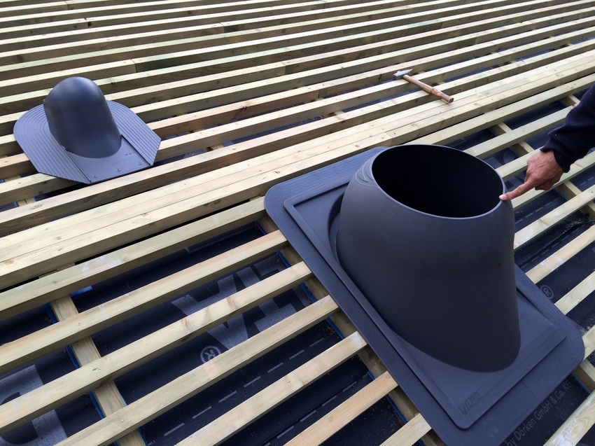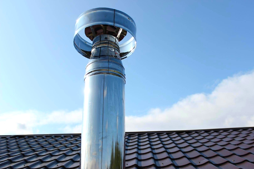 - Sekiranya paip ditanggalkan lebih dari 3 meter, ketinggian dipilih supaya bahagian atas deflektor tidak lebih rendah daripada garis pesongan yang ditarik dari rabung ke tepi bumbung pada sudut 10 °.