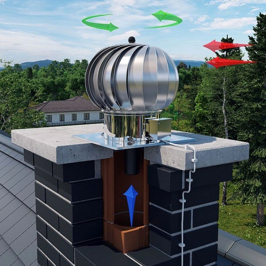 Deflektor cerobong dipasang terutamanya untuk memperbaiki draf, yang menghilangkan asap dan karbon monoksida di luar. Di samping itu, setelah pemasangan peranti, pemindahan haba meningkat, dan bahan bakar habis dengan lebih baik. Pelbagai gambar deflektor pada cerobong juga menjelaskan bahawa dengan bantuan peranti, paip dilindungi dari pemendakan dan serpihan lain yang dibawa dari luar.