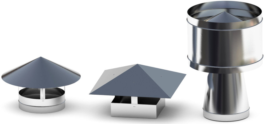- Payung. Perincian menghalang serpihan memasuki saluran pengudaraan. Ia kelihatan seperti penutup pelindung yang dilekatkan pada bahagian atas peresap.