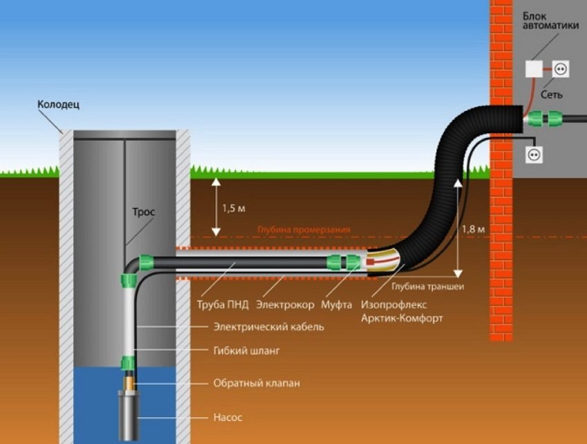 Keratan selang masuk dan hos pam yang tidak sesuai boleh menyebabkan kelebihan komponen dan keausan komponen pramatang. Sekiranya peranti tidak perlu disambungkan ke sumber semasa proses pemasangan, ini hanya dapat dilakukan setelah semua kerja pemasangan selesai. Sekiranya kabel elektrik terlalu pendek, ia boleh dipanjangkan, tetapi sambungannya mesti berada di luar telaga.
