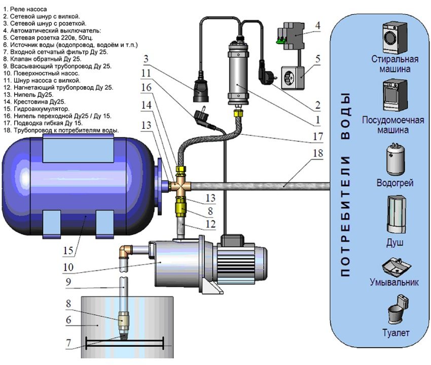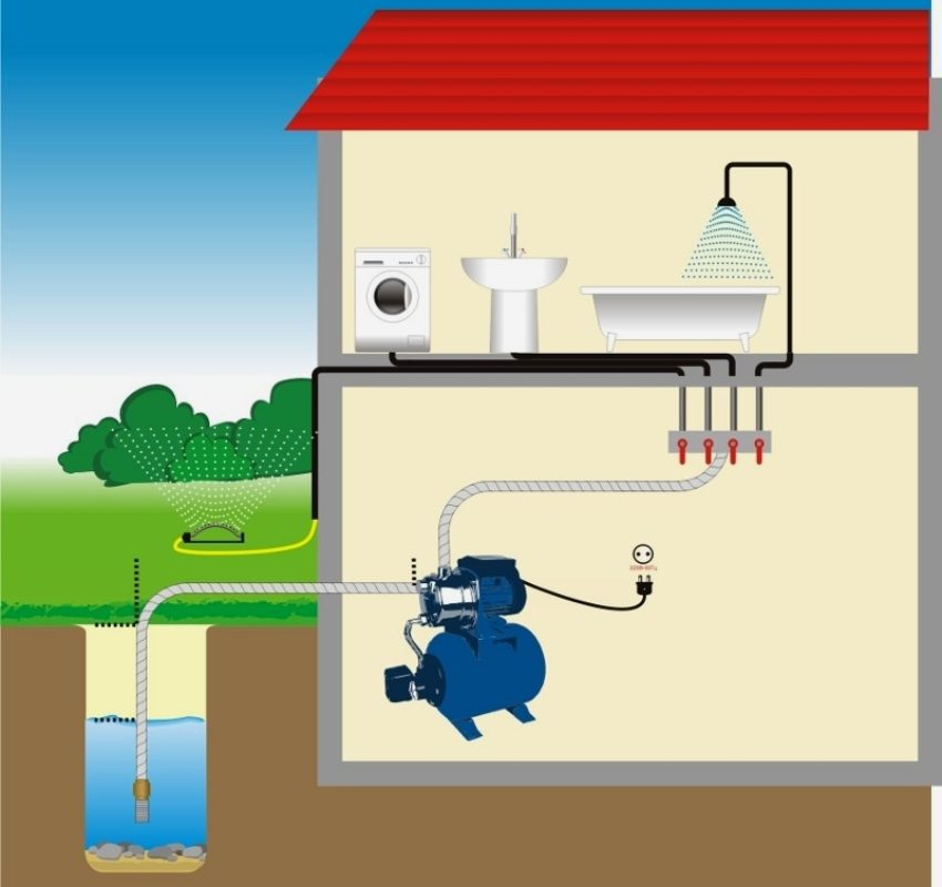 Keupayaan pam untuk meningkatkan tekanan air di rumah persendirian melibatkan mengepam cecair dari telaga atau telaga.