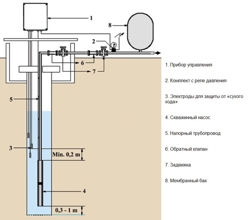 - Relay untuk sistem pelindung "dry running" (pemasangannya diperlukan untuk mengelakkan pemanasan pam yang terlalu panas sekiranya tahap cecair dalam sumber semula jadi menurun; jika tidak ada relay, pam akan mengepam udara dan terlalu panas, yang akan menyebabkan kerosakan)