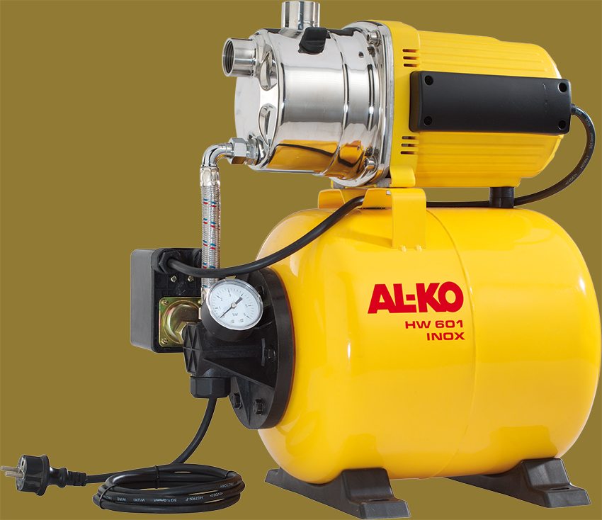 - set tangki mendatar termasuk pendakap sokongan untuk pemasangan bersama pam permukaan dengan penumpuk hidraulik dan suis tekanan.
