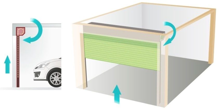 - penutup roller luaran (atau overhead) - dipasang di luar garaj, dan kotak dipasang di atas pintu;