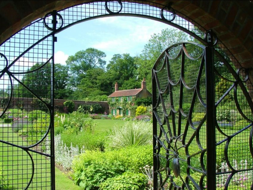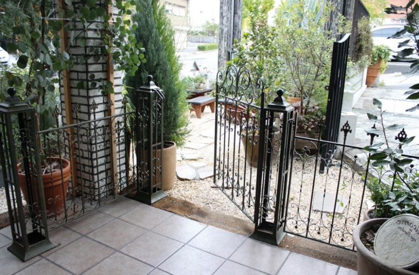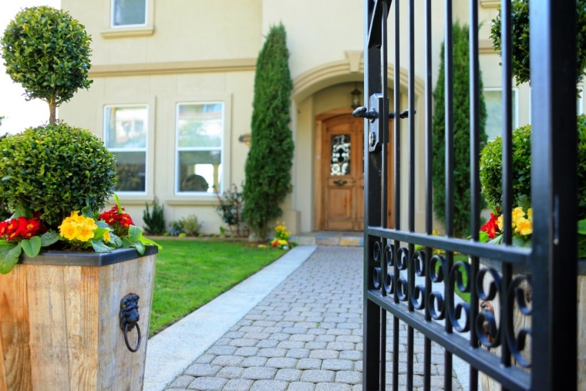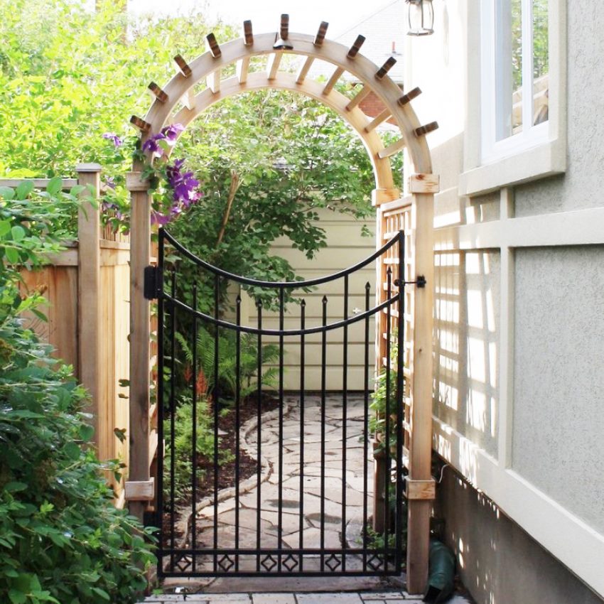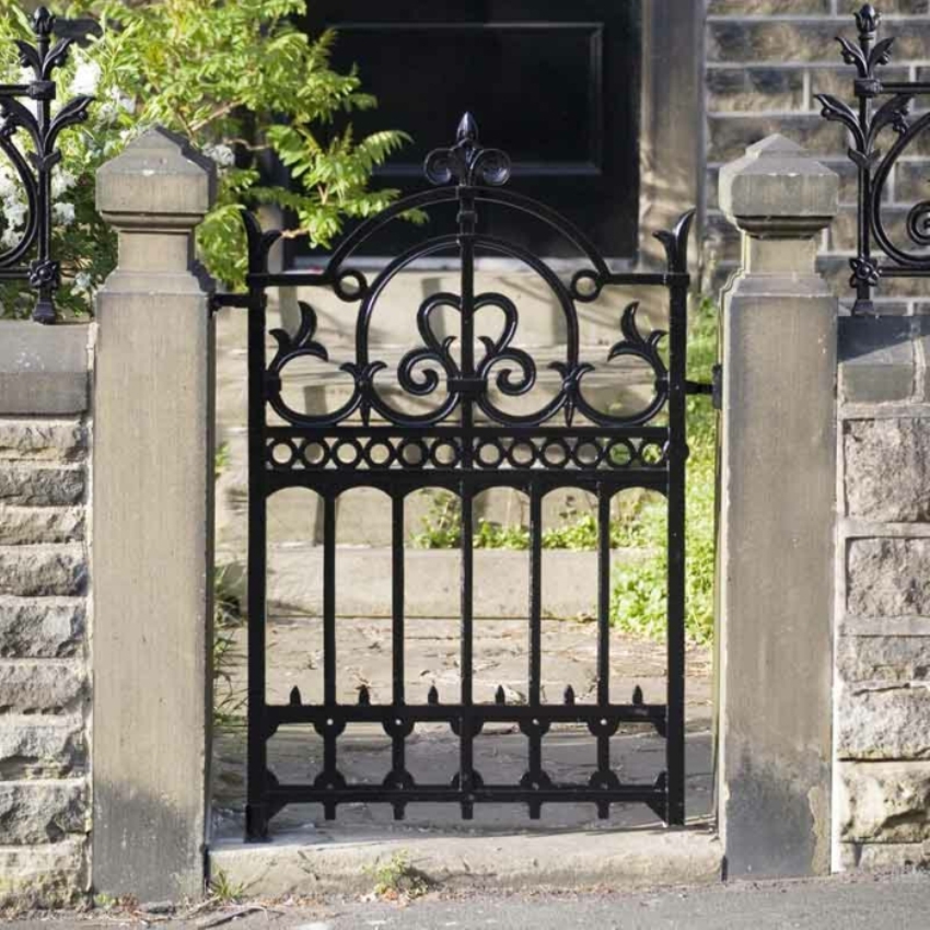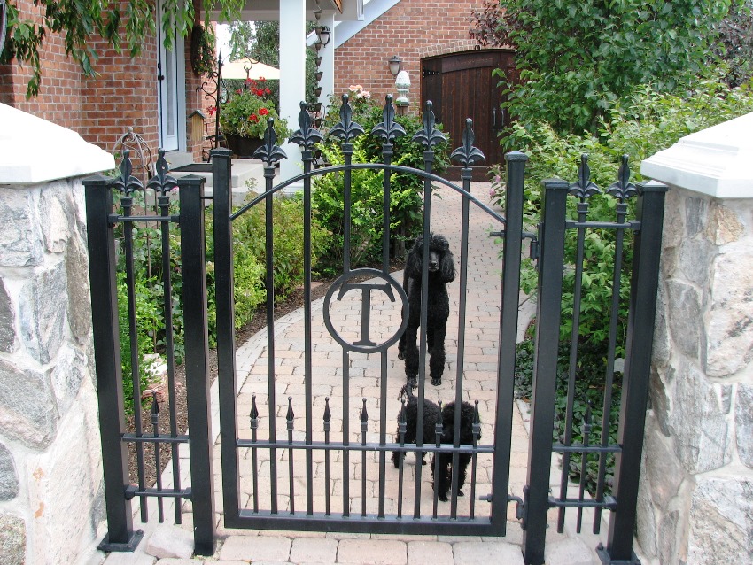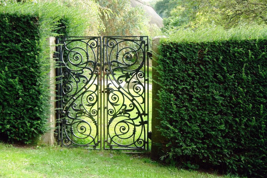 Pintu besi tempa boleh digabungkan dengan pagar yang diperbuat daripada bahan apa pun