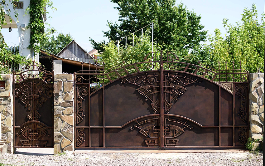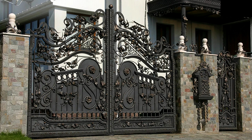 Semasa memilih gaya reka bentuk, anda perlu fokus pada reka bentuk rumah dan kawasan yang berdekatan dengannya. Teknologi pengeluaran gerbang pada masa kini secara praktikalnya tidak berbeza dengan kaedah pengeluaran sebelumnya. Master menggunakan alat pandai besi yang sama seperti sebelumnya dan menjalankan pemprosesan logam, dengan mengambil kira lakaran yang dipilih oleh pelanggan. Oleh itu, pelbagai elemen penempaan pintu seni dihasilkan.