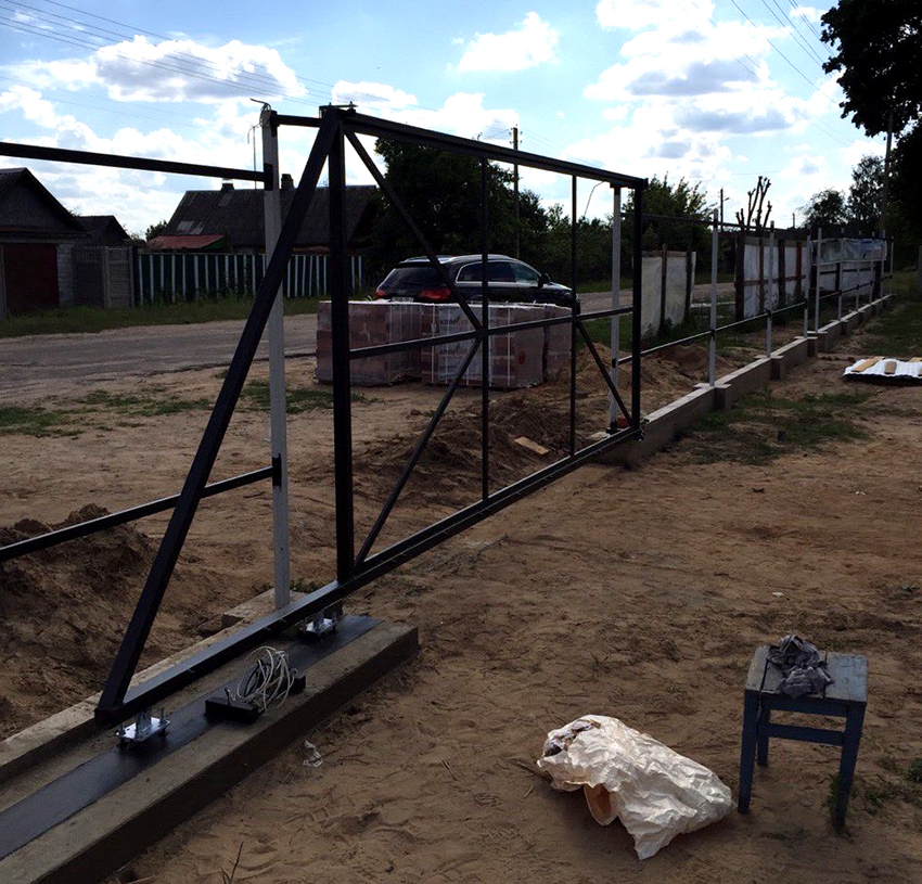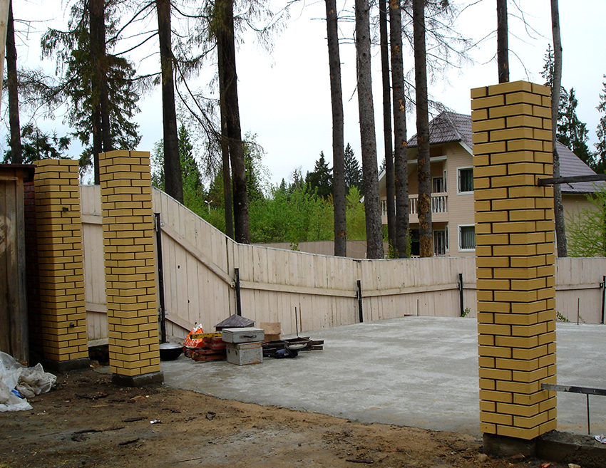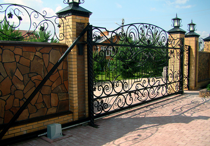 Gerbang yang dipalsukan mempunyai jisim yang tinggi, oleh itu disarankan untuk membuat penyokong dalam bentuk tiang yang kuat dengan bata