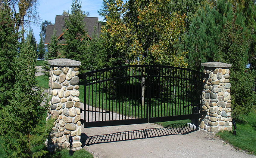 Mengangkat gerbang. Versi paling asli. Mekanisme khas dipasang pada produk sedemikian. Semasa pembukaan, pintu-pintu seperti itu naik dan memasuki bangunan, membebaskan laluan.Reka bentuk ini mempunyai beberapa kelemahan. Syarat khas diperlukan untuk pemasangannya. Kelemahan dalam kes ini adalah harga tinggi pintu gerbang palsu. Pilihan yang boleh ditarik adalah yang paling boleh diterima jika perlu mengatur perjalanan di tempat yang terhad.