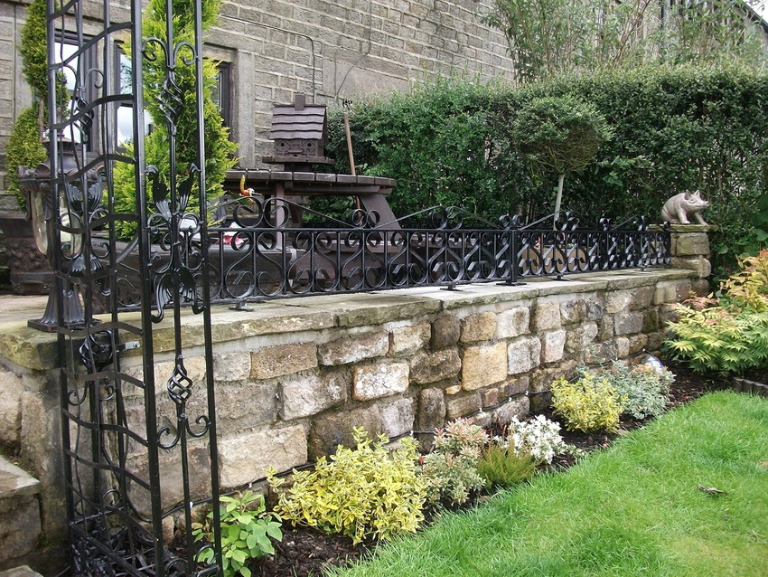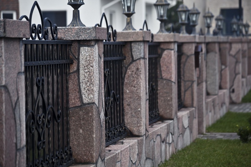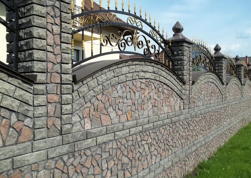 Gabungan papan batu, penempaan dan beralun adalah penyelesaian yang baik untuk membuat pagar yang cantik dan boleh dipercayai