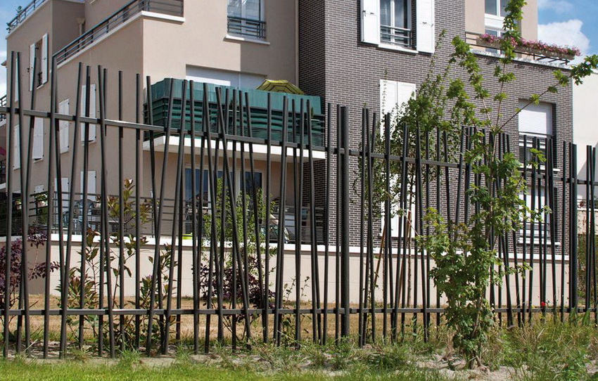 Moden. Pagar dalam gaya ini merangkumi elemen abstrak. Perlu diperhatikan bahawa garis lengkung yang sama rata (atau tidak) di pagar adalah popular.