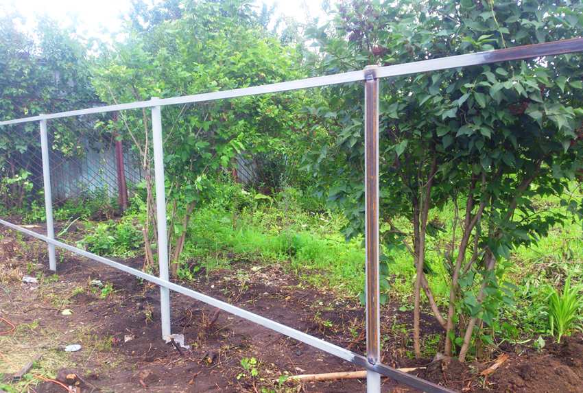 Untuk mengatur rangka, adalah kebiasaan menggunakan paip berbentuk. Dan anda juga boleh menggunakan profil yang digunakan untuk memperbaiki kepingan eternit. Pagar polikarbonat pada kerangka logam bukanlah struktur yang kompleks, namun disarankan untuk memerhatikan perkadaran semasa operasi.