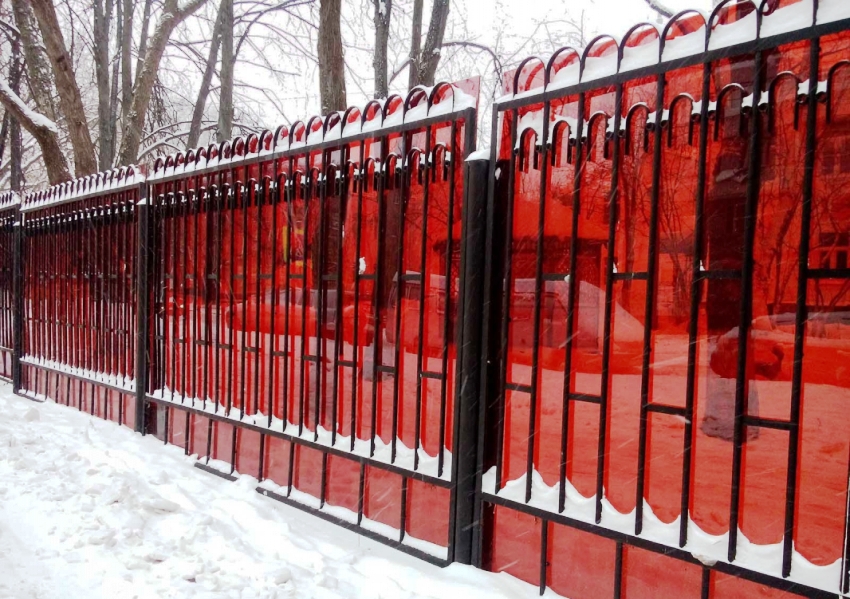 Maklumat berguna! Dalam beberapa kes, kanvas ini digunakan dalam kombinasi dengan mesh 3D. Pagar polikarbonat jenis ini sangat tahan lama. Bahan plastik itu sendiri mempunyai fungsi hiasan.